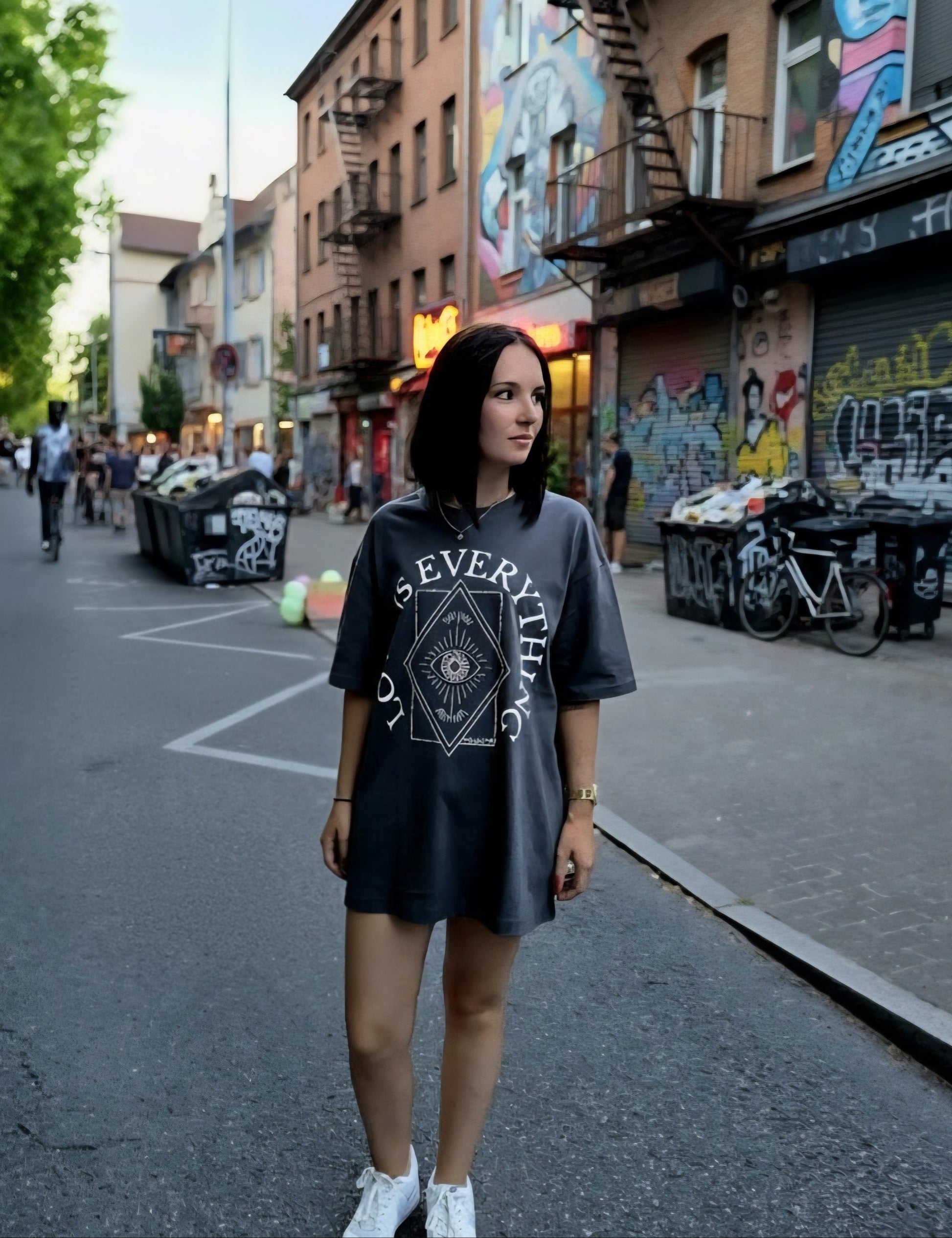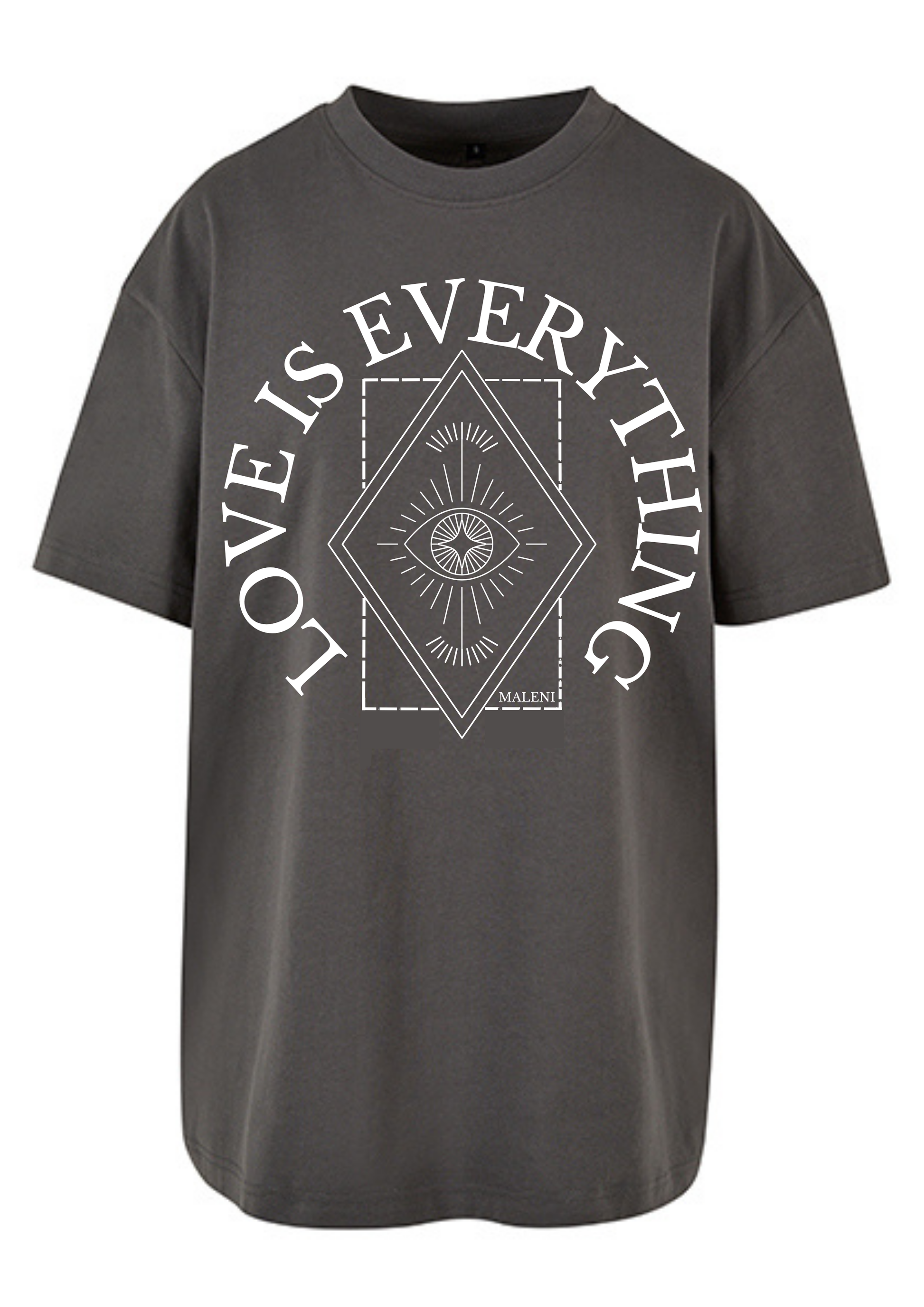 Das Luce Amore Oversize T-Shirt trägt eine klare Botschaft: Love is everything. Begleitet von einem großen, zentral platzierten Auge mit strahlenden Sonnenlinien steht dieses Shirt für bedingungslose Liebe, innere Wachheit und die tiefe Wahrheit, dass alles, was zählt, aus dem Herzen kommt. Es ist nicht laut – aber es sagt alles.
